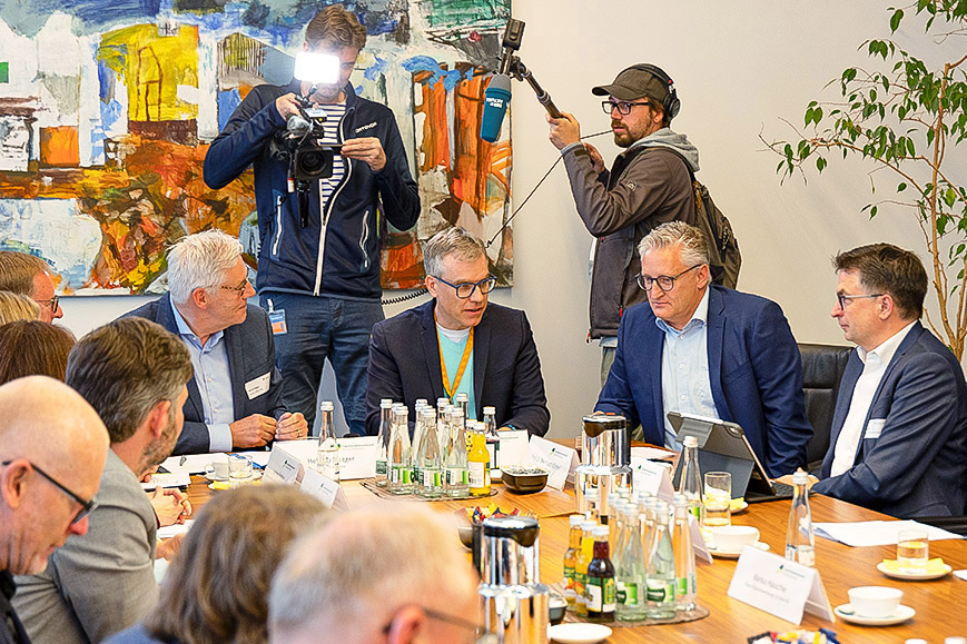 Philip Paschen, stellvertretender Vorsitzender Geschäftsführung der Firma Witzenmann und Hausherr des Kick-off-Events sowie außerdem Mitglied des Transformationsbeirats, wies darauf hin, dass das 170 Jahre alte Pforzheimer Familienunternehmen bereits zweimal transformierte – vom Schmuckunternehmen in die Industrie, von der Industrie zum Automobilzulieferer. „Und jetzt geht es richtig rund. Jetzt müssen wir in der Dekarbonisierung der Wirtschaft ankommen.“