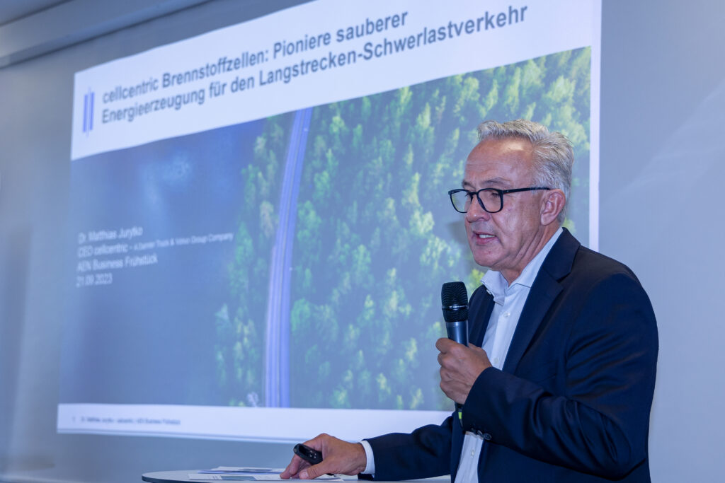 Wasserstoff sei unausweichlich, er werde künftig Bestandteil des täglichen Lebens sein. Denn gerade beim Schwerlastverkehr spielen Gewicht, Reichweite, CO2-Neutralität und das Tanken eine Rolle, so Dr. Matthias Jurytko, CEO „cellcentric GmbH & Co. KG“. Der Hersteller von Brennstoffzellen, Pionier sauberer Energieerzeugung für den Langstrecken-Schwerlastverkehr, ein Joint Venture von „Daimler Truck“ und „Volvo Group“, ist auf dem Weg, aus geringerer Stückzahl hoch zu skalieren auf mehrere tausend Stück.