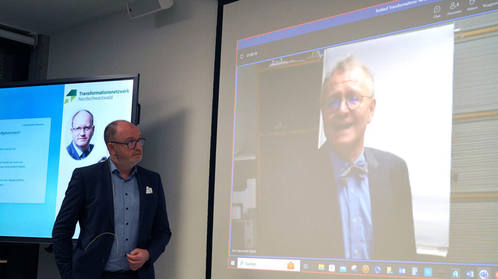 Professor Dr. Dr. Harald Neudorfer wird für seinen Impulsvortrag zur „Zukunft der Elektromobilität in Deutschland und Europa“ aus Wien zugeschaltet. Der eloquente Österreicher beschäftigt sich seit 40 Jahren mit Elektrotechnik; er nennt Transformation seinen „täglichen Job“, da er an mehr als 220 Seminartagen pro Jahr zu den aktuellen Fragen der Antriebstechnik referiert.