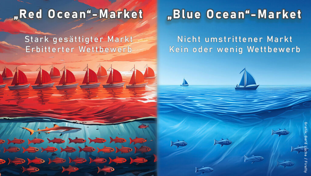 Explanation of the Red Ocean market and the Blue Ocean market. ©Graphic:GerdLache/Firefly