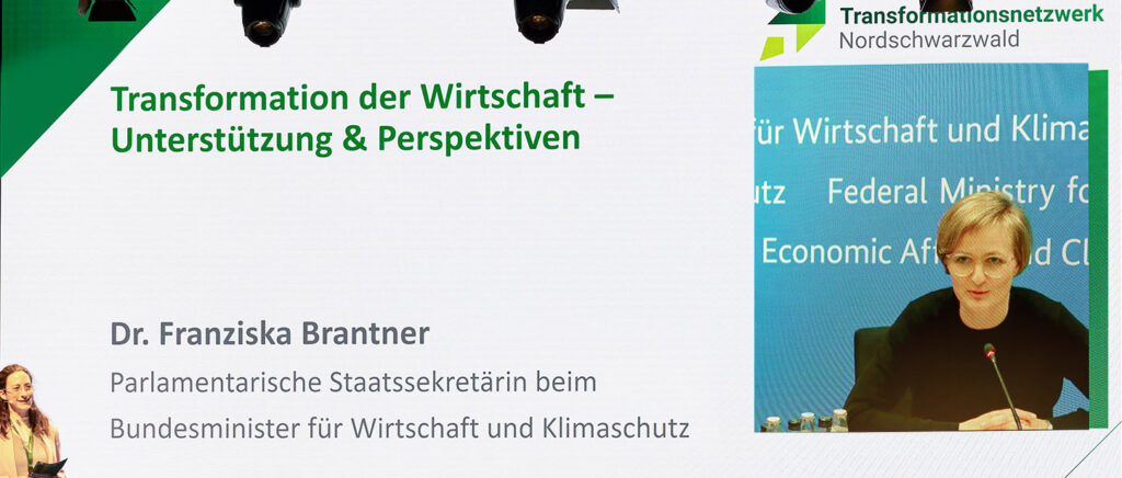 Im zweiten Kongressteil setzten weitere Experten inspirierende Akzente. Olaf Sauer vom Fraunhofer-Institut Karlsruhe sprach über die Chancen digitaler Wertschöpfungsketten für kleine und mittlere Unternehmen. Staatssekretärin Franziska Brantner (Bundesministerium für Wirtschaft und Klimaschutz) schaltete sich per Videobotschaft aus Berlin zu. Trotz der politischen Turbulenzen nach dem Aus der Ampelkoalition zeigte sich die neu gewählte Co-Vorsitzende der Grünen optimistisch: „Das Transformationsnetzwerk Nordschwarzwald bleibt ein Leuchtturm für zukunftsweisende Entwicklungen.“