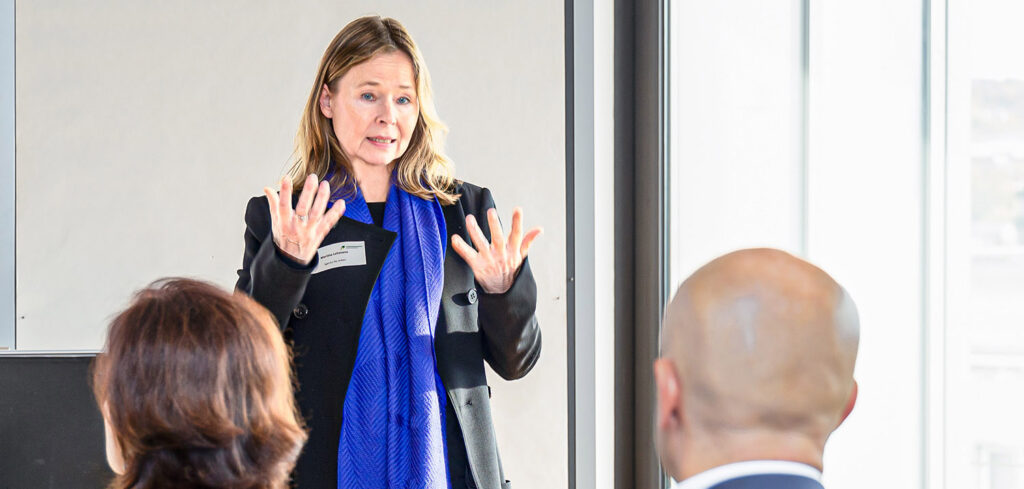 Martina Lehmann als Geschäftsführerin der Agentur für Arbeit Nagold-Pforzheim stellte die Leistungen der Agentur vor: Die Agentur für Arbeit unterstützt und berät Unternehmen und Beschäftigte in der Transformation sehr konkret und auf deren individuelle Belange ausgerichtet.