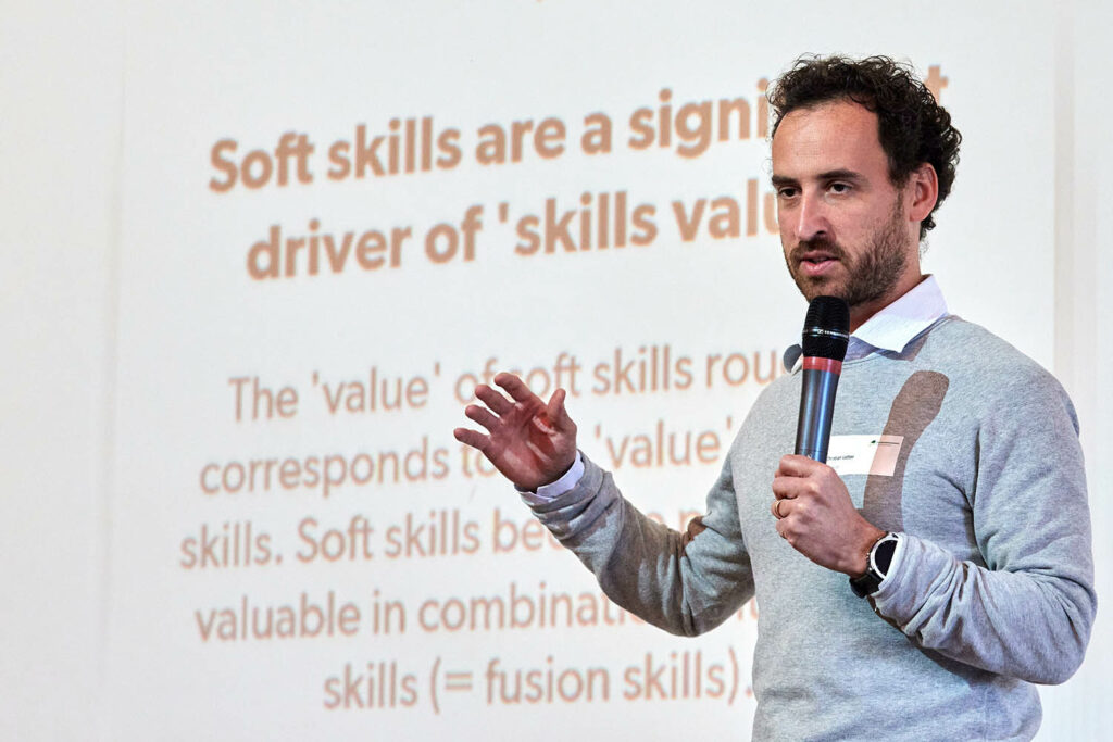 „Die Arbeitswelt ist stark im Wandel“, führte er weiter aus und legte dar, inwieweit verschiedene Fähigkeiten einen Marktwert haben. Vetter führte außerdem vor Augen, dass Soft Skills in Kombination mit Hard Skills den höchsten Wert haben.