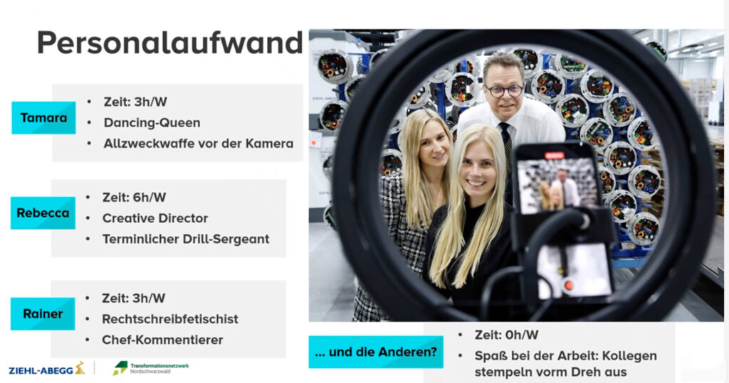 4. TikTok muss nachhaltig bespielt werden. Bei Ziehl-Abegg waren es anfangs drei Clips pro Woche. Das Konzept: „Wir machen Unterhaltung und Employer Branding.“
