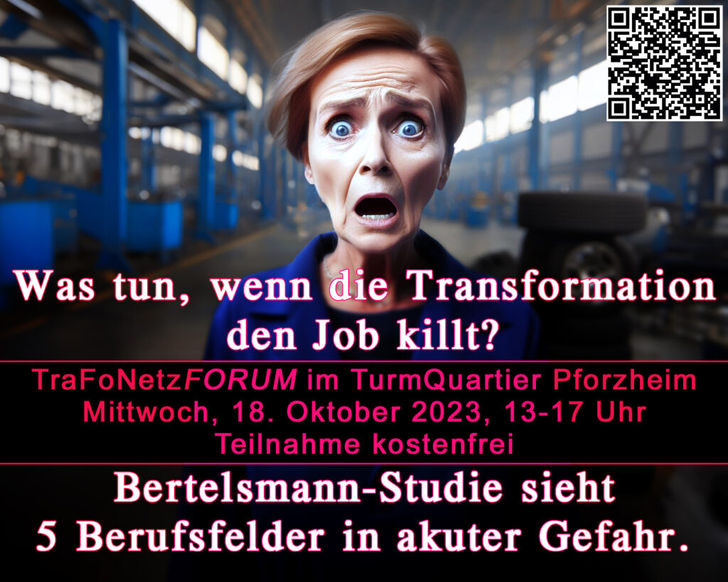 Die Antwort darauf gibt eine Veranstaltung von TraFoNetz am 18. Oktober 2023 im Pforzheimer TurmQuartier der Sparkasse Pforzheim Calw. Von 13 bis 17 Uhr werden sogenannte Übergänge in neue Berufe vorgestellt. Außerdem gibt es Detail-Infos zur Bertelsmann-Studie.
